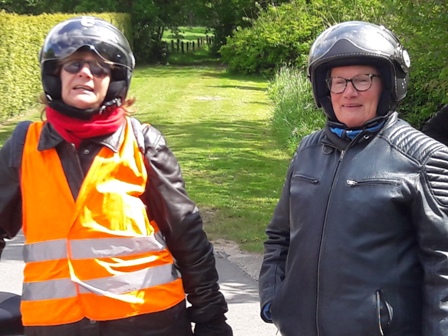 Weliswaar op Moederdag stond de rit gepland die ik had uitgezet. Blijkbaar hadden niet veel moeders er problemen mee dat er een rit van de Kreidler club was, want er kwamen toch nog 31 personen opdagen die allemaal mee reden. Hier onder ook 3 vrouwen, Trees en Frany en Ursula. Dus aan deelname geen gebrek zou ik zeggen.