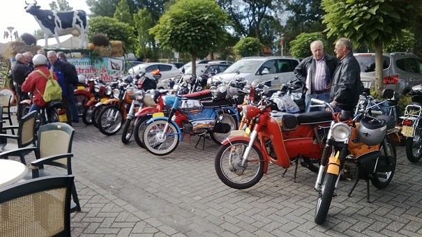 Frau Antje was prominent aanwezig. Onze secretaris wist haar over te halen om te poseren bij zijn (onze) Kreidlers, zodat ze nog beter tot hun recht zouden komen. Ze staan er allemaal fraai op, ook onze blonde deerne.