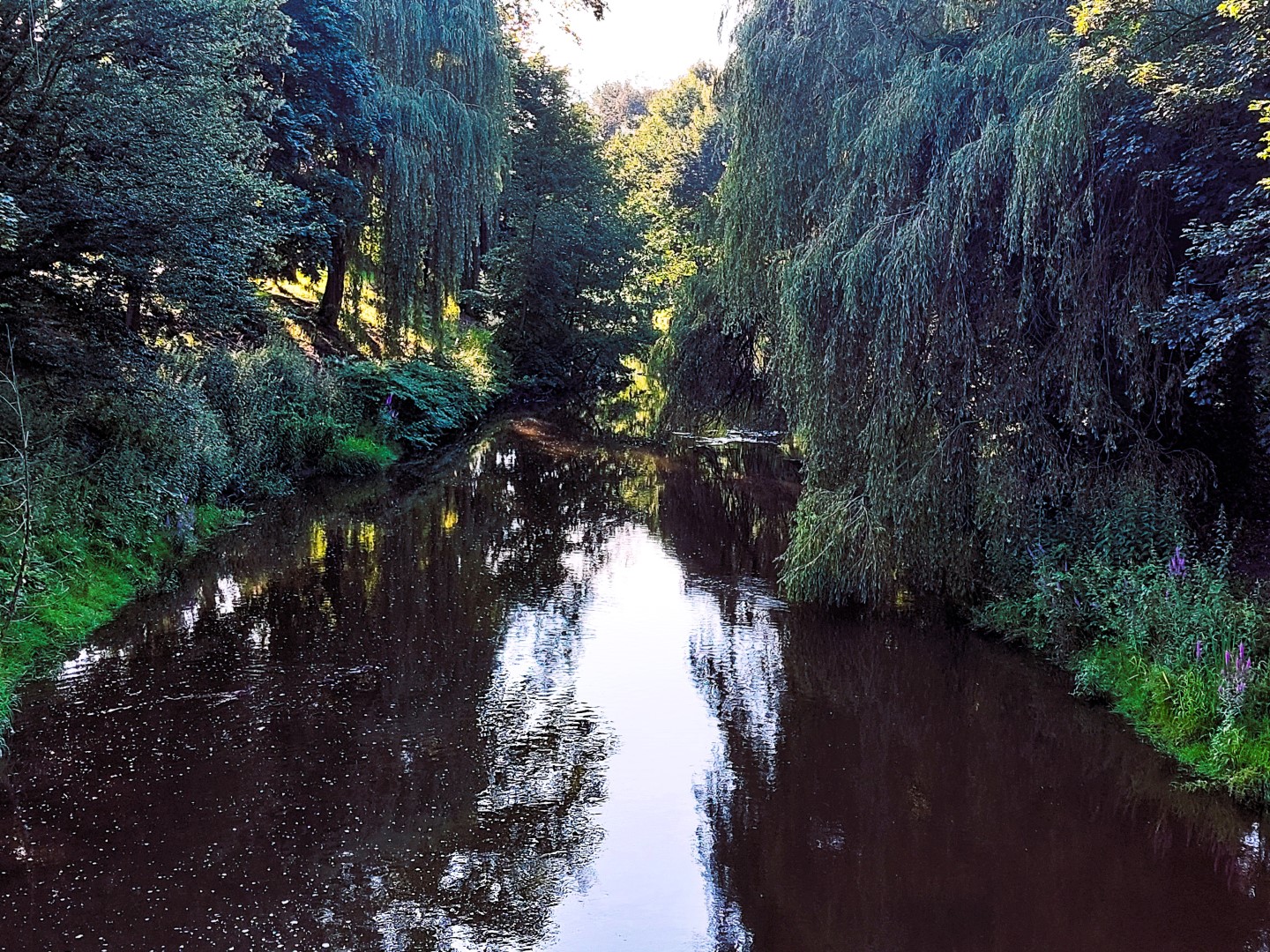 In de kerk is door bronzen randen aangegeven hoe deze door de eeuwen heen is uitgebreid. De rit ging om 18.30 van start na een bakje koffie, aangeboden door een kennis van het drietal die de rit organiseerden. Martin reed voorop en Han was de hekkensluiter. Globaal reden we de volgende route: Haaksbergen, (Oostdorper) Watermolen, Rekken, Duitsland in, Zwillbrocker Venn (Hier in de buurt “woont” ook ergens een flamingo kolonie), Ellewickerfeld en dan naar de Duitse plaats Vreden met ongeveer 23.000 inwoners. Hier hadden we een pauze midden in het dorpspark. Het laatste stukje hier naar toe moesten we eigenlijk onze brommers uitzetten om dat het park fiets en brommer vrij is. (Kwam niet zoveel van terecht)