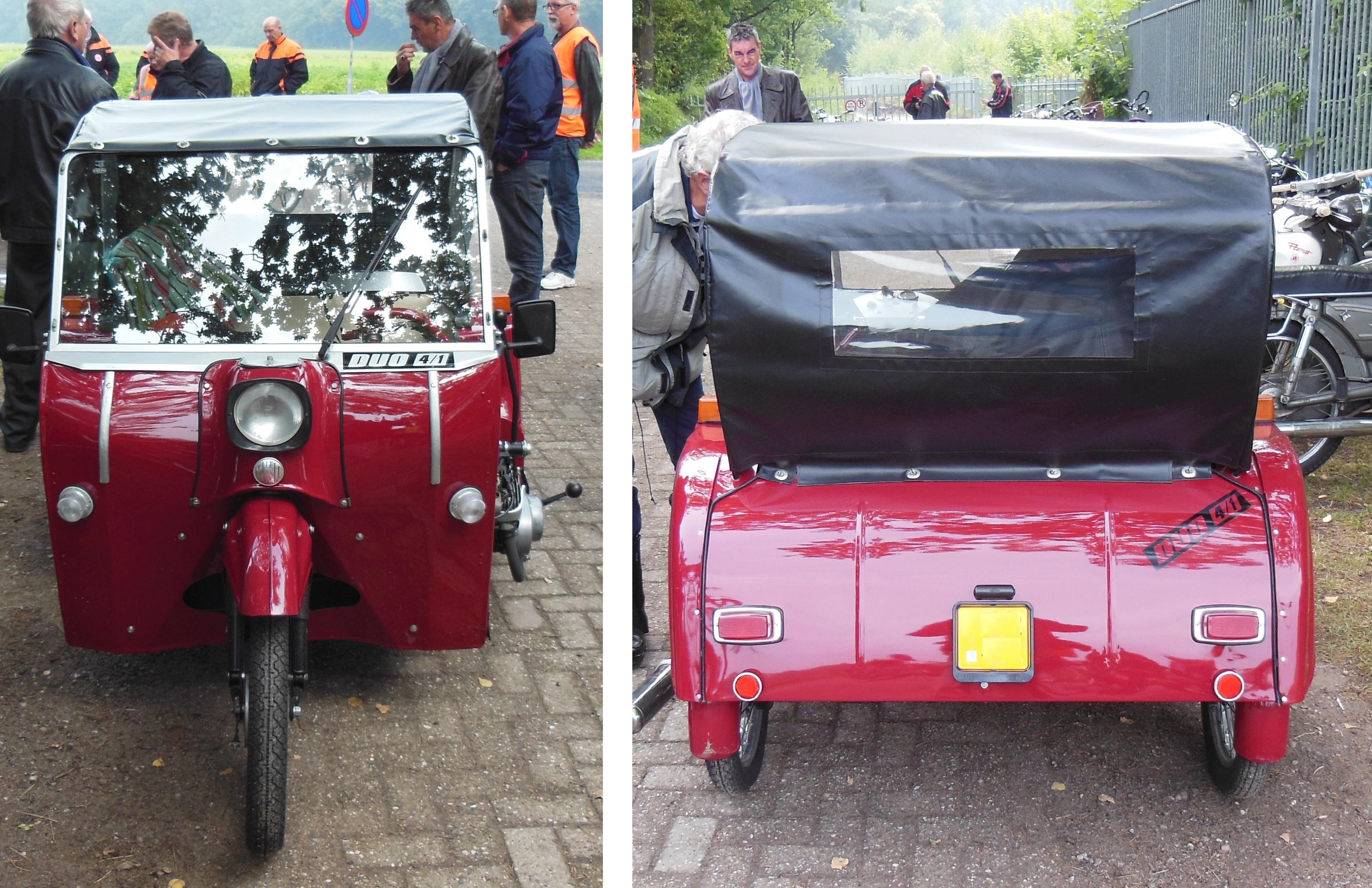 Aan een bijzonder voertuig dat aan de rit meedeed wil ik nog even aandacht besteden. Het gaat hier om een Simson drie wieler type 4/1 een soort voorloper van de brommobiel.