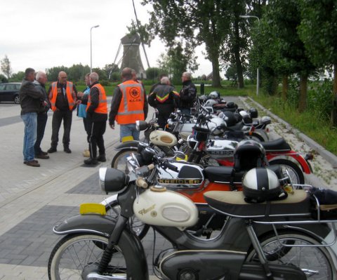 Onze brommers (of wij??) hadden zeer veel bekijks. Ook was er genoeg tijd om leuke gesprekken te voeren over o.a. de Kreidler bromfietsen, het weer, de rooie en de blauwe, Bunschoten-Spakenburg, de toestand in de wereld en de religie.