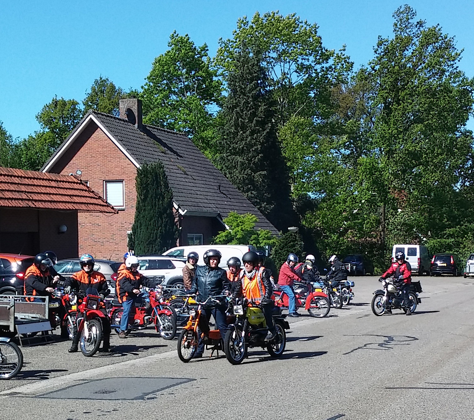 Na het gebruikelijke kopje koffie starten we onder schitterende weersomstandigheden onze machines bij café restaurant Golbach in Deurningen. We waren met ongeveer 36 personen. De rit was uitgezet door Henk Hendriks.