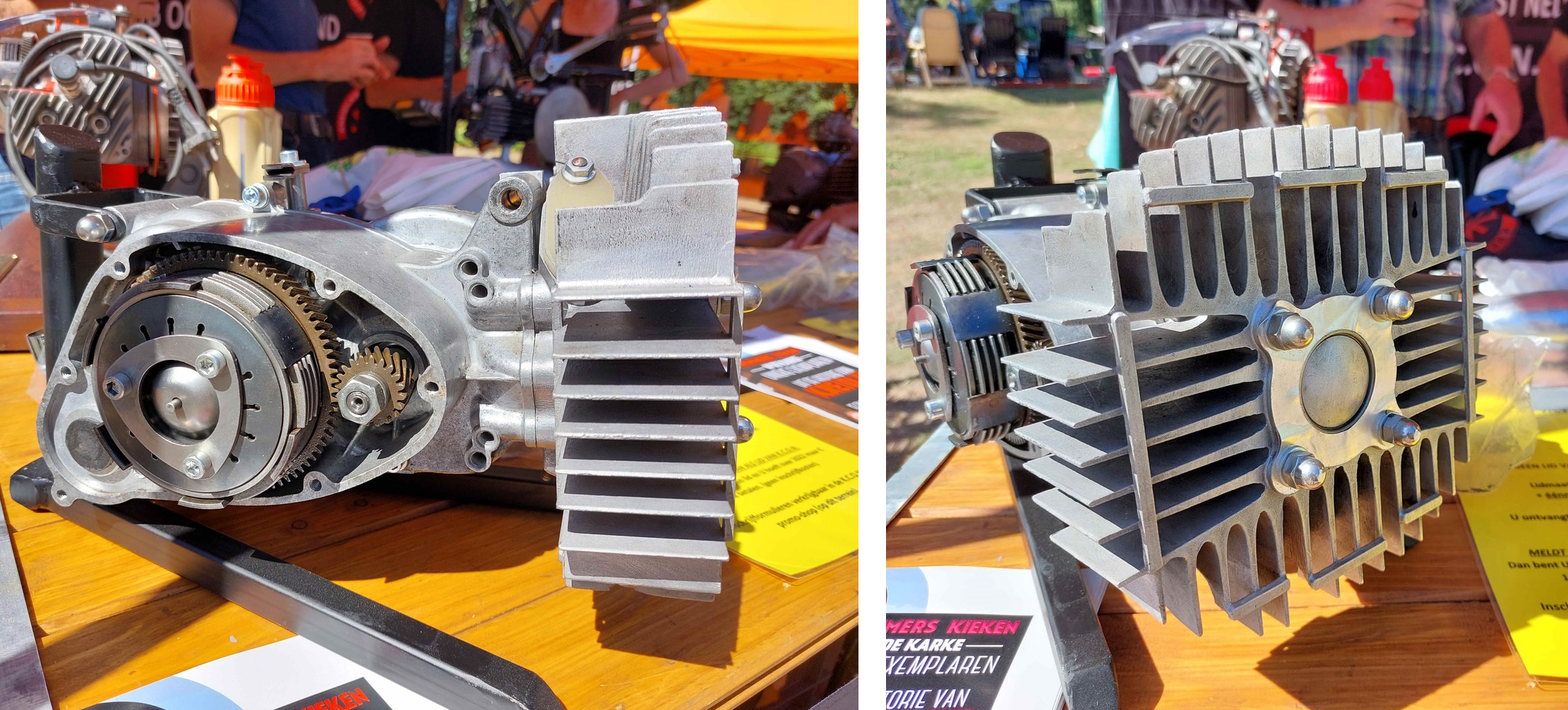 Rondom de stand stonden ook enkele machines: zoals een eigenbouw Kreidler van Peter zelf, een eigenbouw Kreidler-sprint en een cup racer van Bennie Snijders. De sprinter weegt schoon aan de haak 35 kg. De buddyseat bestaat uit twee beugeltjes waarop het niet al te comfortabel zitten is.