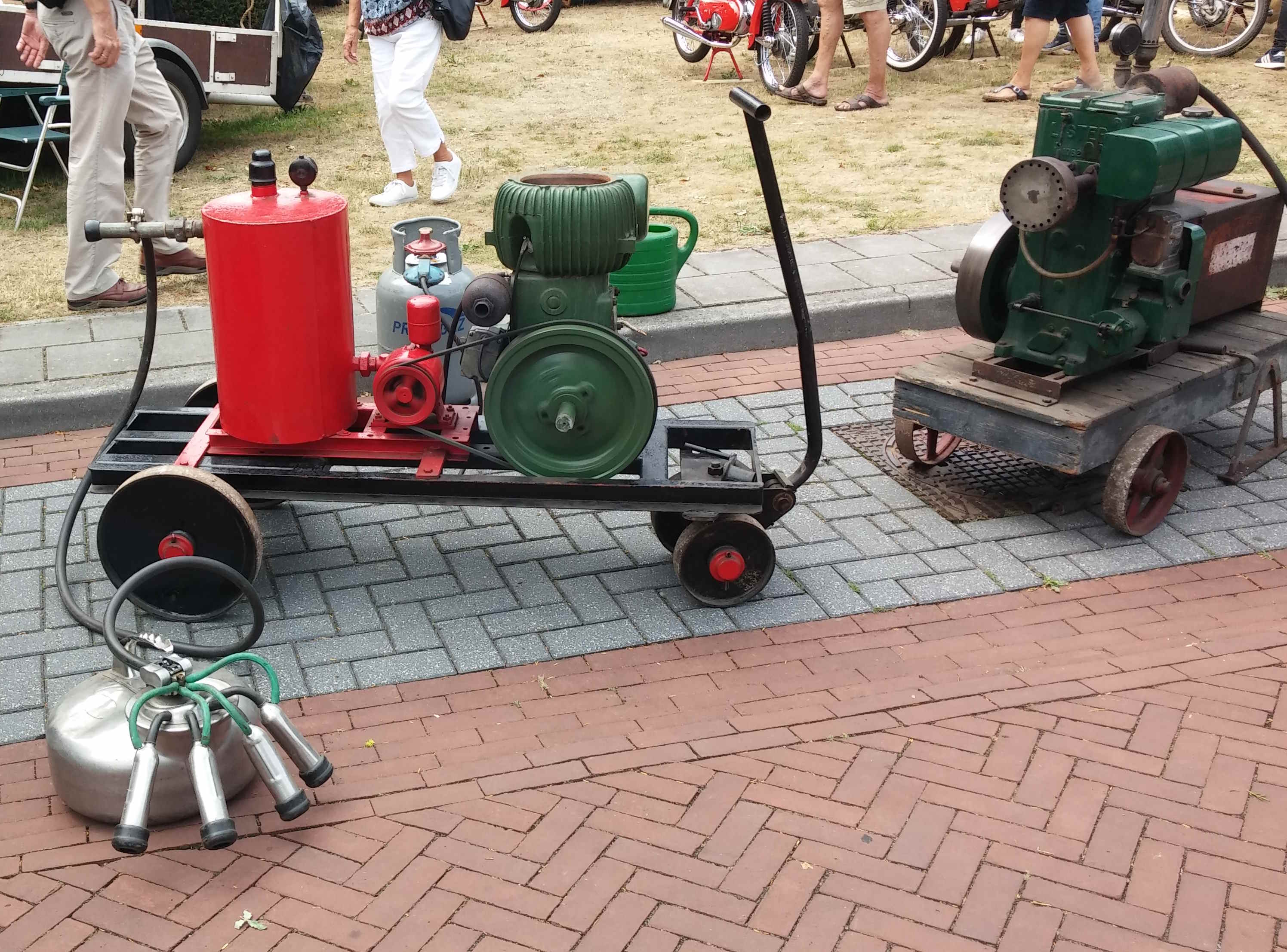 Stationaire motoren. Hier een met een vacuümpomp en een melkstel om te melken in het weiland