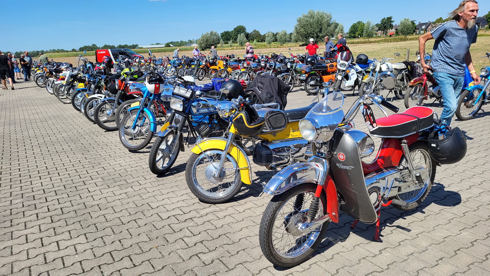 Door de drukte hebben we ook niet Kreidler rijders ingeschreven. Uiteindelijk hebben zich in totaal zo’n 200 rijders ingeschreven. Iedereen kreeg een consumptiebon, een vaantje, een routebeschrijving en een polsbandje voor herkenning bij de pauzeplek.