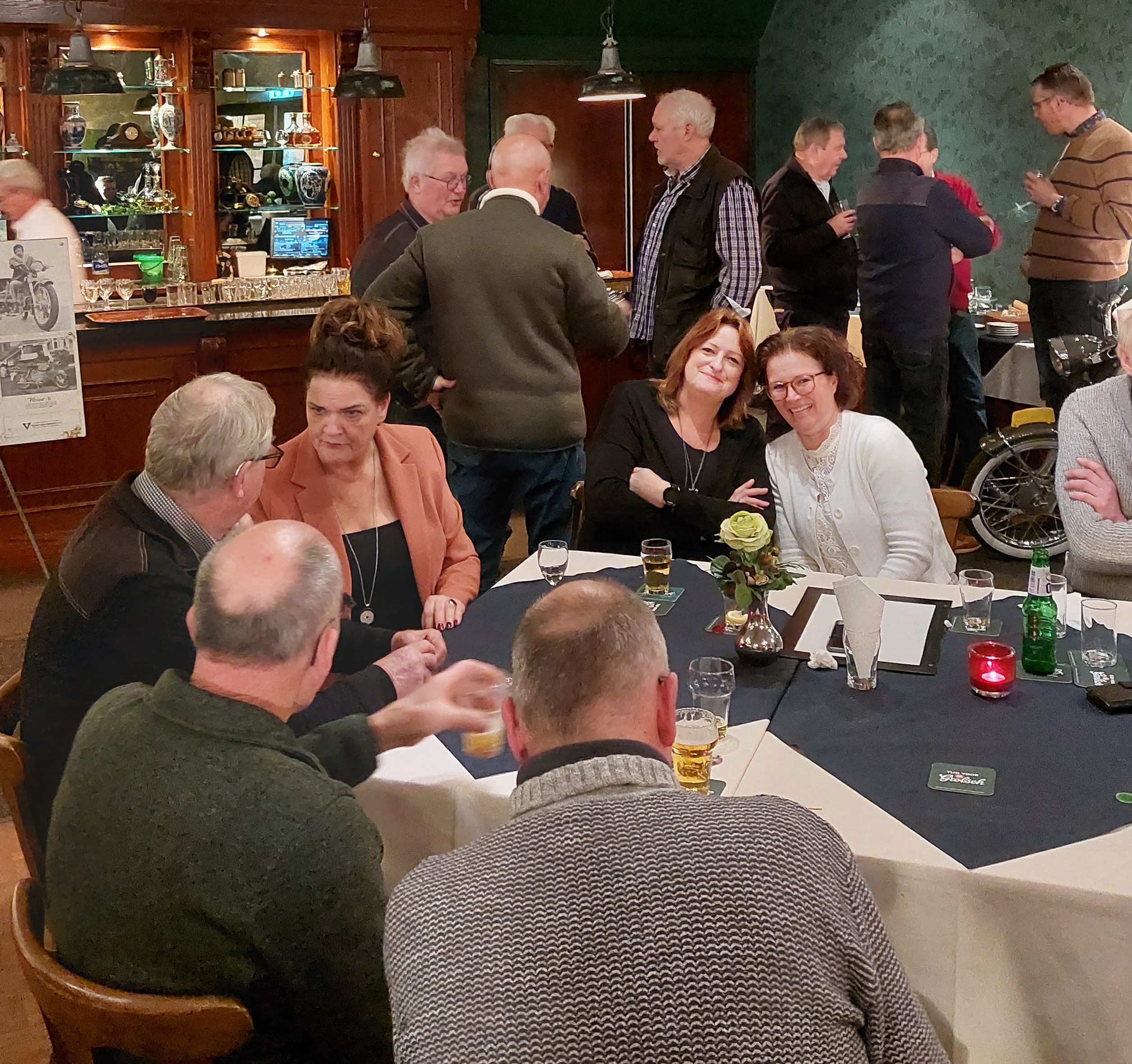 Kreidler red.) Onze voorzitter Ben Dorenbusch deed een woordje en heette iedereen welkom op de receptie. Ben stond even stil bij het verlies van mede oprichter en ere lid Johan Bok. We zijn in hem een dierbare man verloren. Sterkte voor de familie. Er werd samen geproost op het nieuwe jaar waarmee we hopen een fantastisch jaar mag worden. 56 leden waren aanwezig waaronder we ook een paar van onze nieuwe leden mochten leren kennen.
