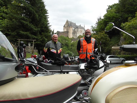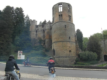 In Bollendorf even geluncht bij de Turk. Kebab, schnitzels, pizza hier was van alles te nuttigen. In Vianden nog even gestopt bij het kasteel en Trees maar meetrappen. Prima conditie heeft deze dame, maar zoals gezegd hebben af en toe de stoere mannen haar iets opgeduwd zodat de Flory weer gang kreeg, en daar ging ze weer. Ze was zeker niet de langzaamste hoor naar boven toe, de Kreidler van haar man had er soms minstens zo veel moeite mee om naar boven te komen. Onderweg nog even gestopt bij de grote stausee van de waterkrachtcentrale. Dit lig op het hoogste punt in de omgeving waardoor er na een leuke beklimming te voet een prachtig uitzicht was.