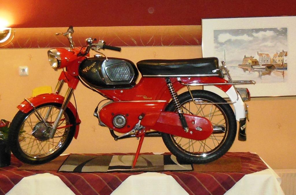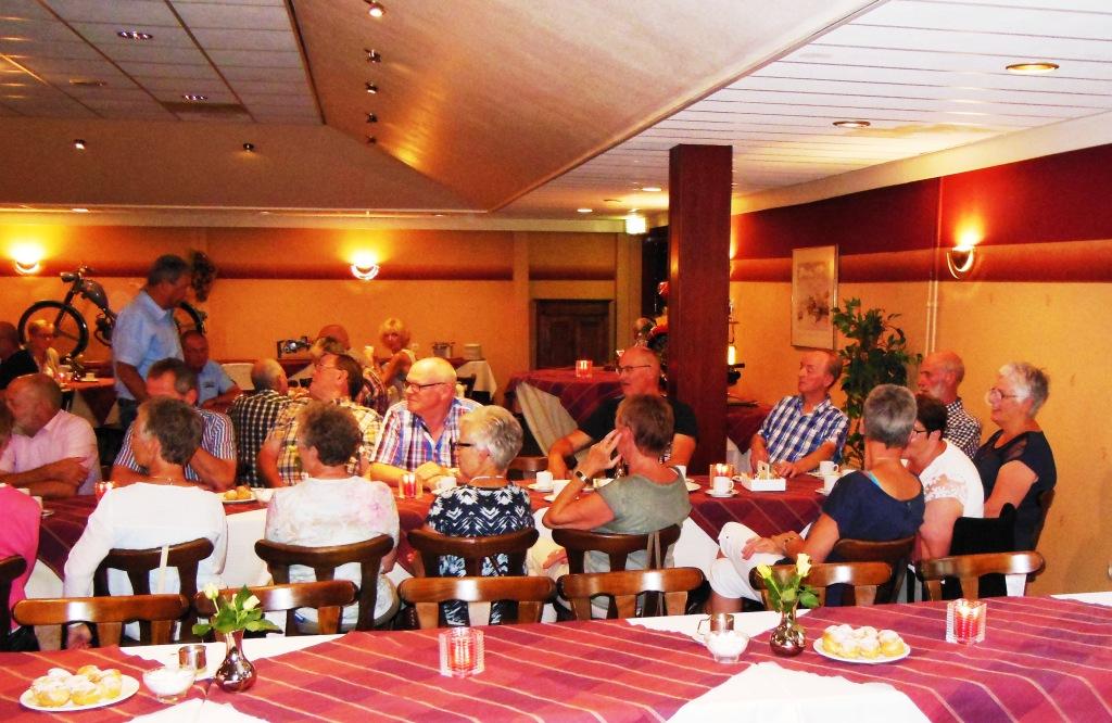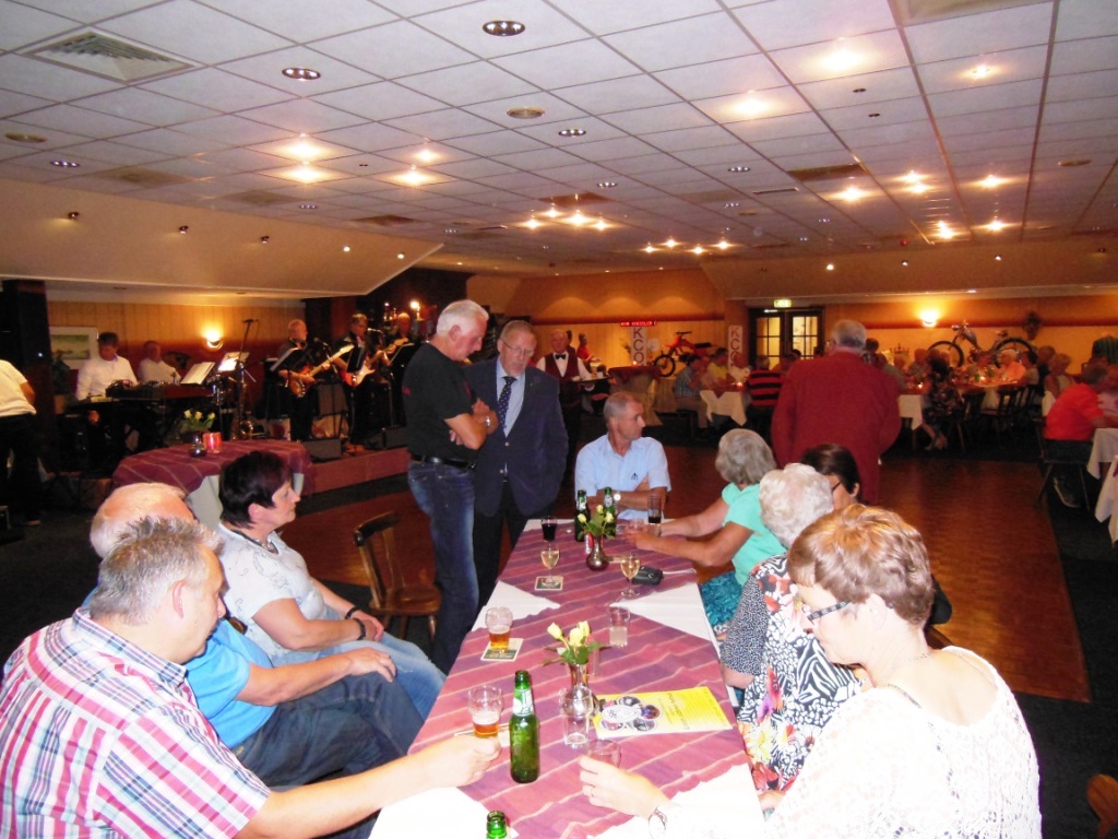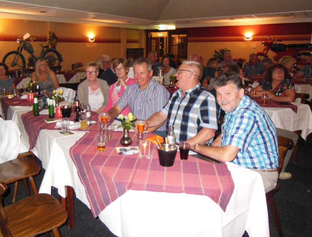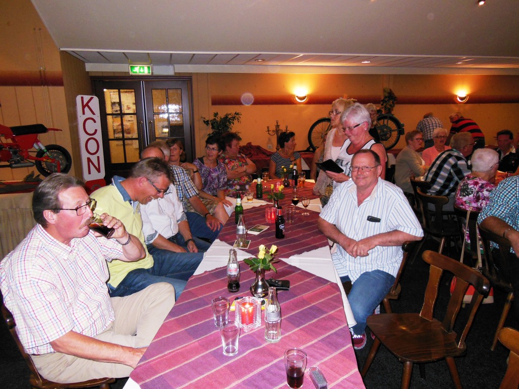 Op 23 augustus 2015 was het precies 25 jaar geleden dat onze club officieel werd opgericht Ter gelegenheid van dit heugelijk feit is er door een door het bestuur aangestelde feestcommissie e.e.a. georganiseerd. Als eerste is er door de commissie veel georganiseerd tijdens het bromfietstreffen op 5 juli. Op de exacte oprichtings datum was er een prachtige tourrit uit gezet. En als laatste evenement tijdens dit jubileumjaar was er op 29 augustus een feestavond bij de Olde Mölle te Neede. Jammer dat het volledige bestuur niet aanwezig kon zijn. Wat ook jammer was, was de magere opkomst van de leden. In z’n totaliteit waren er ca 80 mensen inclusief partners en enkele sponsoren. Dat viel erg tegen. Van de aanwezige leden waren er ca 35 met partner. Dus in totaal hadden zich 80-35 = ca45 leden opgegeven. Op een ledenaantal van 315 is dit (om niet te zeggen bar) erg weinig. Toch waren er ook mensen die van ver gekomen waren ondermeer uit Arnhem , Noord Holland, Joure en uit Veenhuizen in Drenthe. De gezelligheid was er echter niet minder om. De muziek speelde nummers uit de 60 en 70er jaren,schitterend. Al hoorde ik zo hier en daar er zit geen Beatles of Rolling Stones bij. Persoonlijk had ik enkele Nederlandstalige nummers uit die tijd ook wel mooi gevonden. Dit blijf je houden, smaken verschillen nou eenmaal. Wat mijns inziens bij iedereen in de smaak viel was de demonstratie van de Rock and Roll groep. Het was een wervelende show. De avond werd op een uitstekende manier aan elkaar gepraat door ceremoniemeester Ben Dorenbusch. Hij had ook de taak om de aanwezige bestuursleden van het eerste uur en die nog lid zijn van onze club in het zonnetje te zetten en een speldje op te spelden met de tekst Kreidler Club Oost Nederland 25 Jaar Lid. Dit waren de heren Bok , Beumer en Libbers. Ook een speldje kregen de heren Wilderink , Hekman en Leferink. Deze waren ,,gewoon,,25 jaar lid. Er schenen echter nog enkele leden aanwezig te zijn die ook 25 jaar lid waren maar geen speldje hebben gekregen. Onze secretaris heeft toegezegd dit uit te zoeken.In de toekomst zullen leden die 25 jaar lid zijn met de nieuwjaarsreceptie worden gehuldigd. Ook de inwendige mens is niet vergeten er was een royaal hapjes/koud en warm buffet. Het smaakte voortreffelijk. Door dat er met het bromfietstreffen met de verloting niet alle prijzen eruit waren gegaan, werden op deze avond enveloppen uitgedeeld met hierin al dan niet een bonnetje voor een prijs. Ikzelf kon me gelukkig prijzen met een mini fietsbel. Aan alles komt een eind , dus ook aan deze feestavond. Om 24.00 uur was het afgelopen (precies zoals in de 60 en 70er jaren). Ik vond het een geslaagde avond!! Op naar de volgende 25 jaar………..alhoewel? Hoe oud hopen we dan te zijn ???
