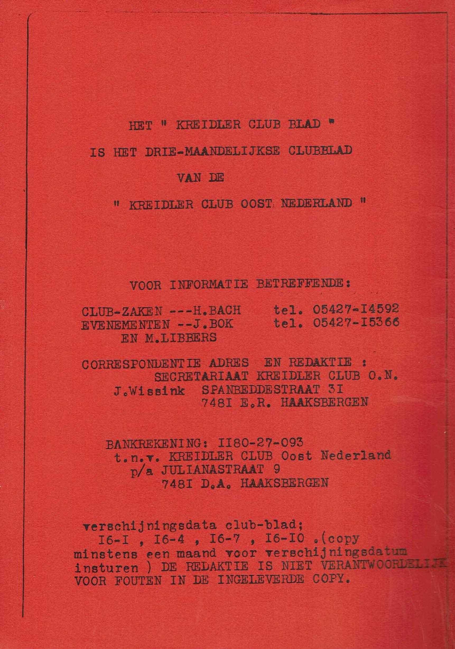 Het eerste blad van onze club in elkaar gezet met letterlijk plakken en knippen en geschreven met een typ machine.