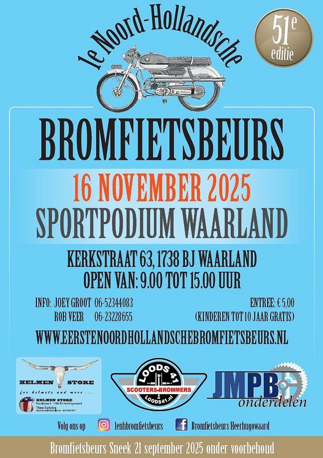 Zondag 16 november Eerste Noord-Hollandse Bromfietsbeurs Waarland