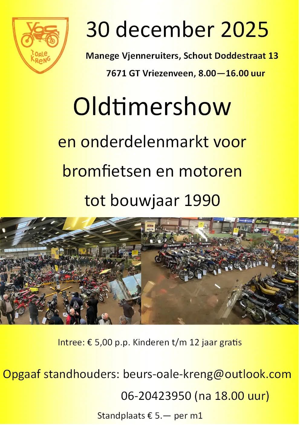 Dinsdag 30 december Oldtimershow en onderdelenmarkt Vriezenveen.