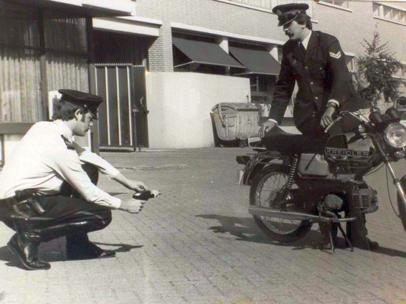 Natuurlijk was het algemene beeld dat een Kreidler (een Duits top-product) met weinig moeite zo gekieteld kon worden dat leuke snelheden haalbaar waren. Dat de politie dit al snel in de gaten had mag blijken uit onderstaande foto.