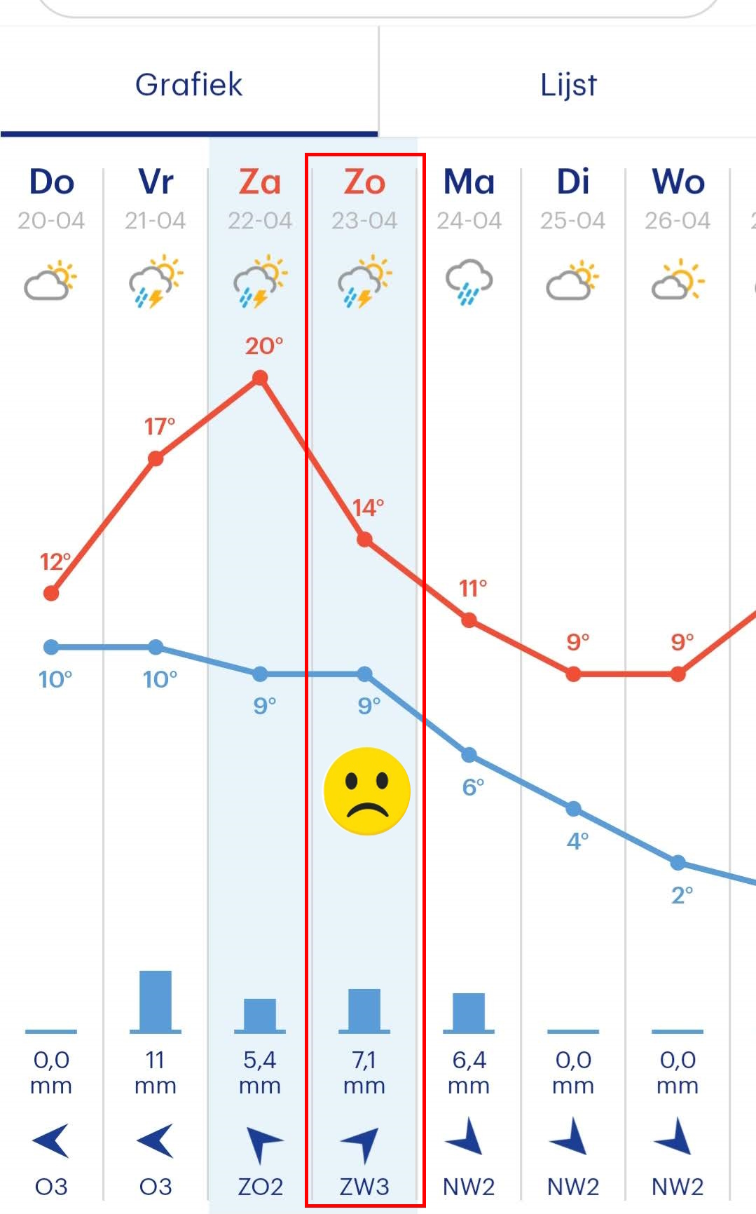 Op donderdag zette ik de weersverwachting van buien radar op de groepsapp van het bestuur. Deze voorspelde voor zondag niet veel goeds.