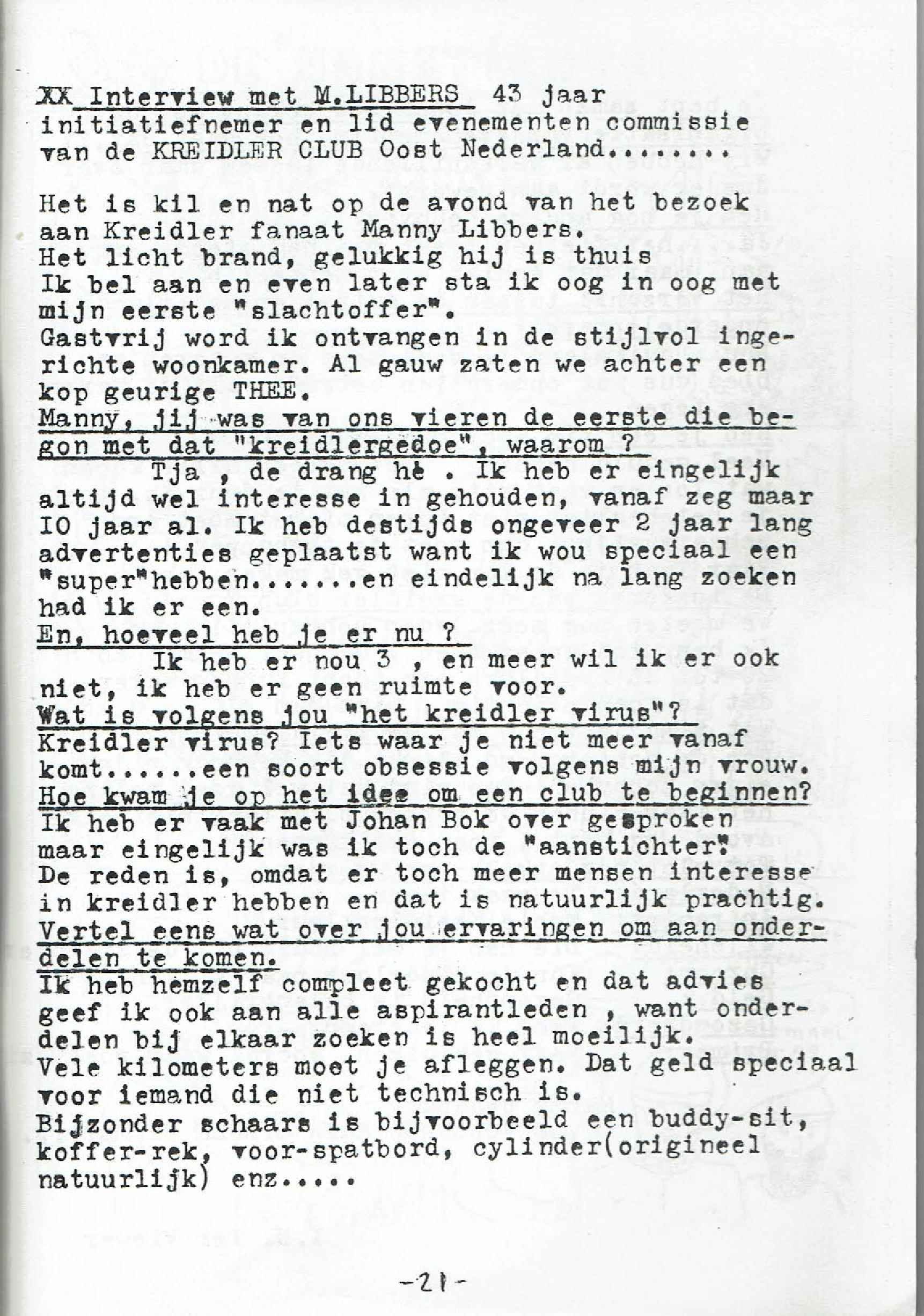 Het eerste blad van onze club in elkaar gezet met letterlijk plakken en knippen en geschreven met een typ machine.